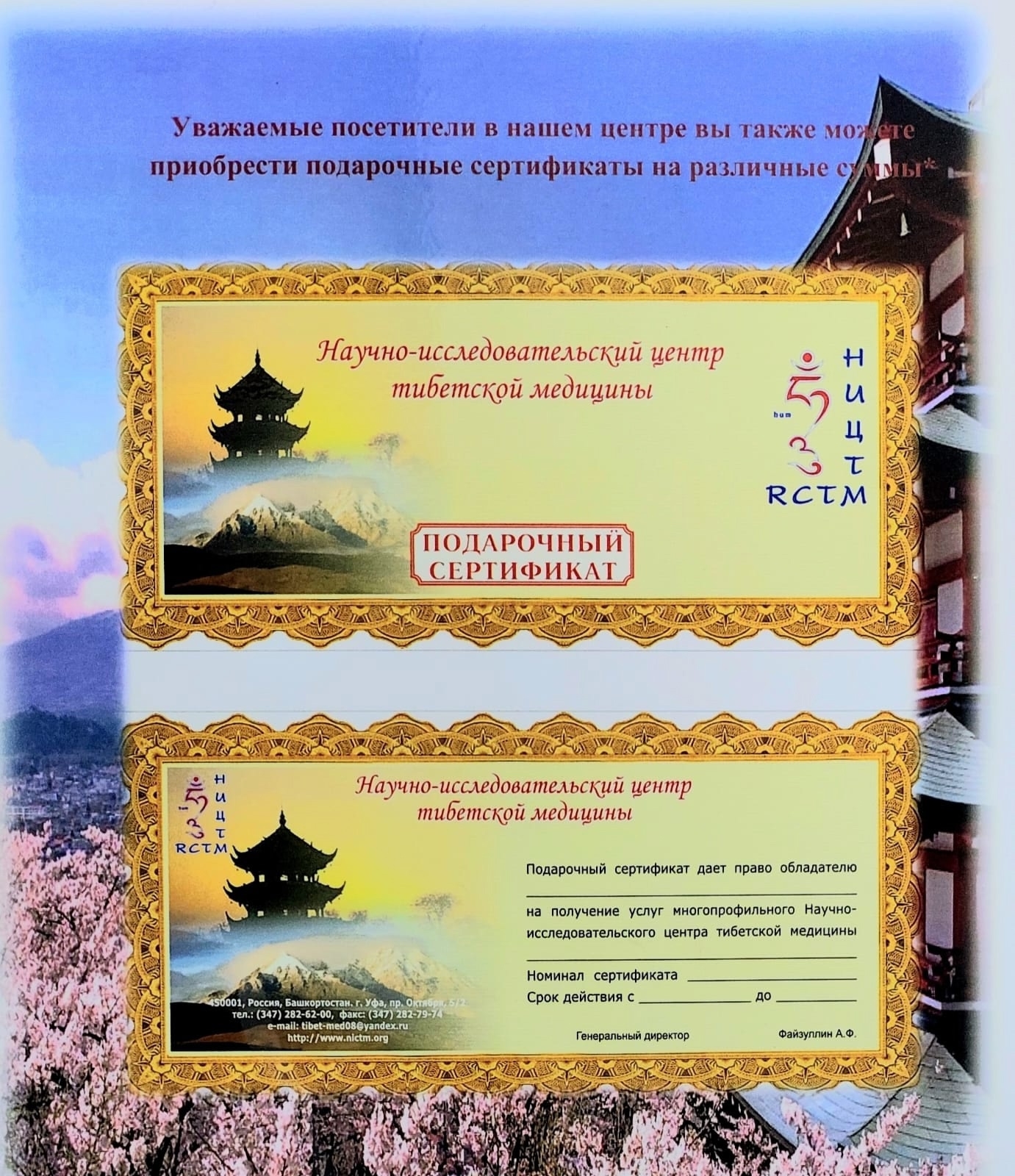 У вас есть возможность сделать идеальный подарок своим родным и друзьям с сертификатами от нашего Центра Тибетской Медицины!