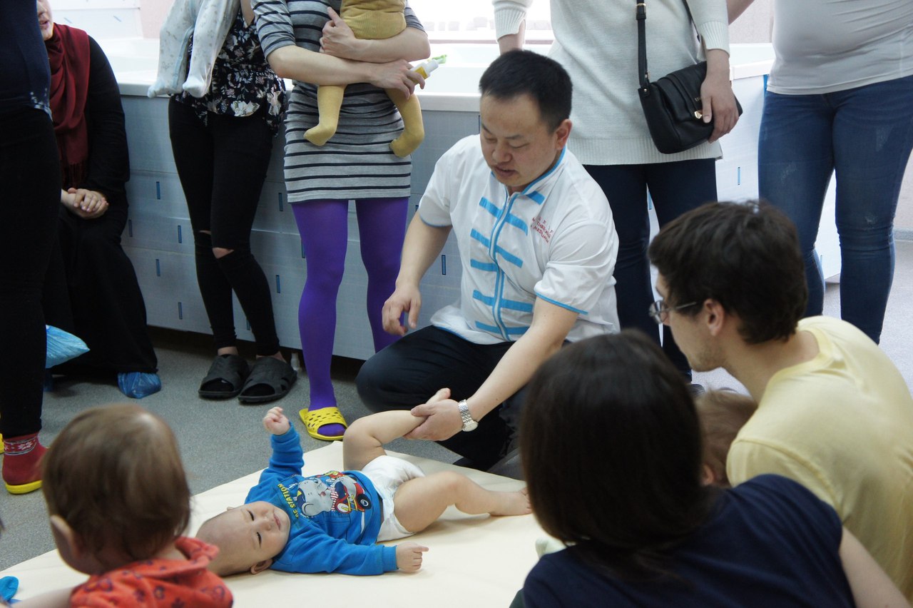 Врач-терапевт высшей квалификационной категории Татьяна Яковлевна Кудряшова от имени центра тибетской медицины представила гостям доктора Доу Дженггуанг, рассказала о работе центра и об услугах, предоставляемых в нем. Доктор Доу Дженгуанг рассказал об основных стадиях развития детского возраста, о главных условиях здоровья и правильного развития ребенка до 3 лет и методах профилактики заболеваний. Подробнее остановился на особенностях физического развития детей и их рефлексах в этом возрасте, на возможных отклонениях в умственном и физическом развитии, на методах лечения тяжелых детских заболеваний в традиционной китайской медицине. Говоря о рефлексах, доктор наглядно показал на ребенке, какие именно рефлексы должны присутствовать или угасать. Так же продемонстрировал расположение важных точек на ногах, стопе, пояснице, которые необходимо массировать при определенных проблемах. В завершении выступления доктор ответил на все интересующие вопросы и дал необходимые рекомендации молодым родителям.