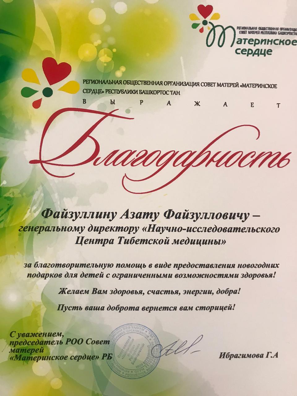 В Новый года все должны быть счастливы, тем более те, кому в этой жизни не легко. Центр Тибетской медицины передал новогодние подарки для детей с ограниченными возможностями в региональную общественную организацию совет матерей "Материнсоке сердце"